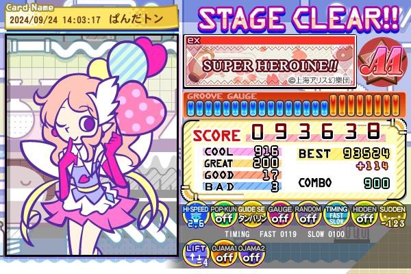 SUPER HEROINE!! EX スコア更新AA BAD3。これも伸びた! これで心置きなくジャムフィズに移行できそうです。