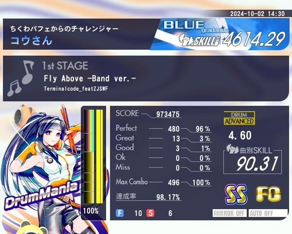 10/2日分、Fly Above(黄ドラム)をプレイ