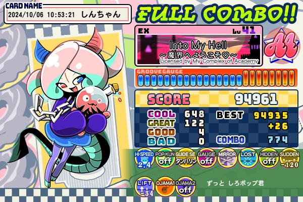 ほりーのしろポップンさんのe-amusementアプリ投稿詳細