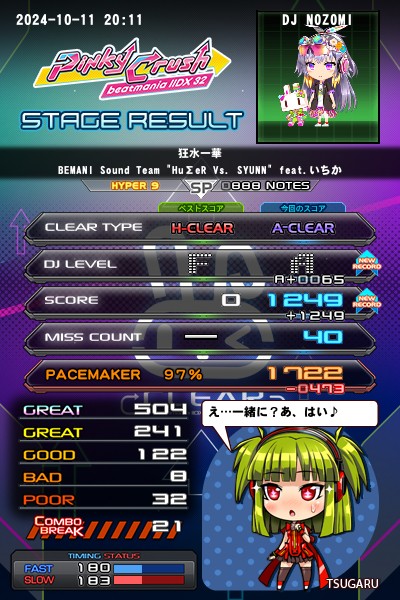 昨日の弐寺〜♪ その1 こちらは昨日のリザルト。いちか曲が伸びるのは地味に嬉しかった(o>ω<o) 今作こそはAA狙いたいなー。(๑•̀ㅂ•́)و✧