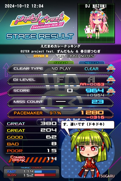 今日の弐寺〜♪ その4 ずんだもんを弐寺の筐体で見る日が来ようとは(笑) リザ画はノマゲクリアですが、この後しっかりHARDクリアに更新してきましたー。(o>ω<o)