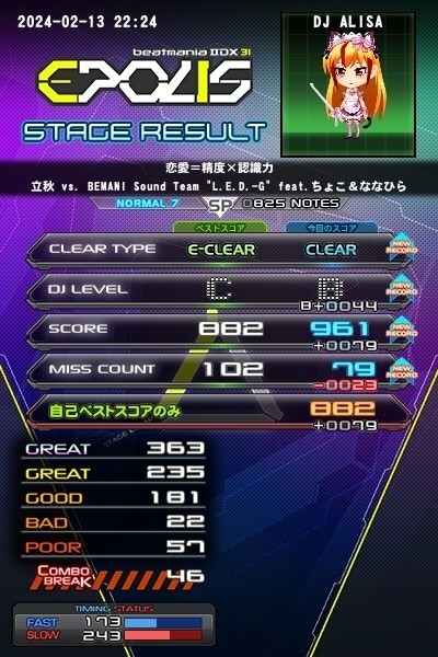 あまりに思い通りにならないので、過去の目標達成時の結果を引っ張り出してきた。この結果があるから満足出来ているけど、一歩間違えれば大問題になるところだった。一応ハードクリア化は考えるけど、現実的には厳しいだろう。 #2DX、#SDVX、#角田利之、#ななひら