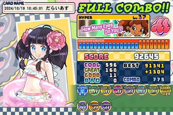 ハウメニーアイズオンユーH、フルコンに出来ました。1切りからフルコンに出来たので良かったです。