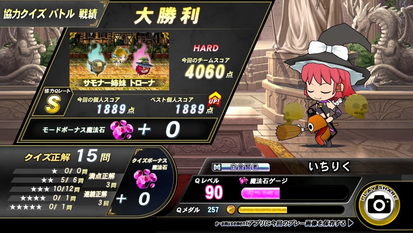 HARDに入るも2名だけ。 大勝利とはなったが。 誰もいないとなりそうだったので一旦切り上げ。 明日からは全国大会(もう8年間もレギュレーション変わってない!)に出払ってHARD野良は人稲杉になりそうなのでミッションは告知に乗るかトリクロで埋めることとするか。 それと協力もマンネリになってきた。
