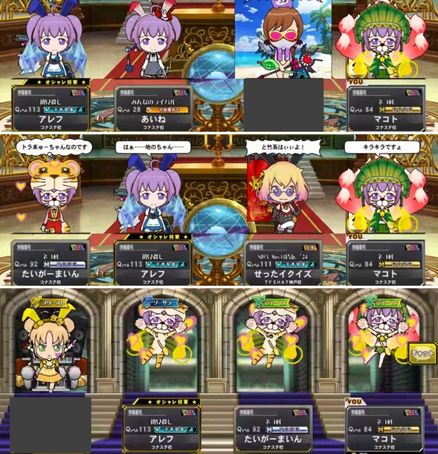 ミューちゃんむふーの会 むふウォーズ3席と協力ノーマル2戦に 参加しました。(・∀・)ゞ❇ 内それぞれの1席(戦)のミューちゃんは アレフさんだけだったので、画像は 省略しますね。(*´ω`*)💦 と言う訳で、アレフさんとは フルマッチだったのです。むふー✨ それとたまたま接侍さんとも マッチングしました。ヾ(≧∇≦)ノ♪ マッチングした皆様 ありがとうございましたです。 (っ´ω`c)✨ムフッ♪