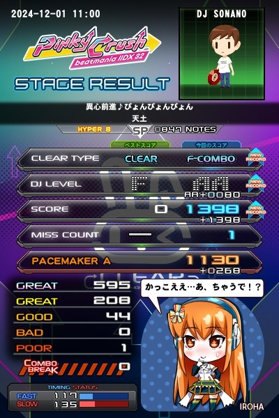 8フルコンその2 いつものようにプレイ中は脳内で電車でD再生してぴょんぴょんのところで電車が跳び跳ねる。(ほんへでやってます。)