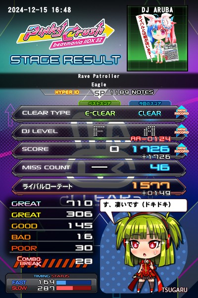 ☆10ノマゲクリアに更新 4作ぶりプレイでしたがスコア+200でBPが-11だったのでもっと早くにクリアできたかな