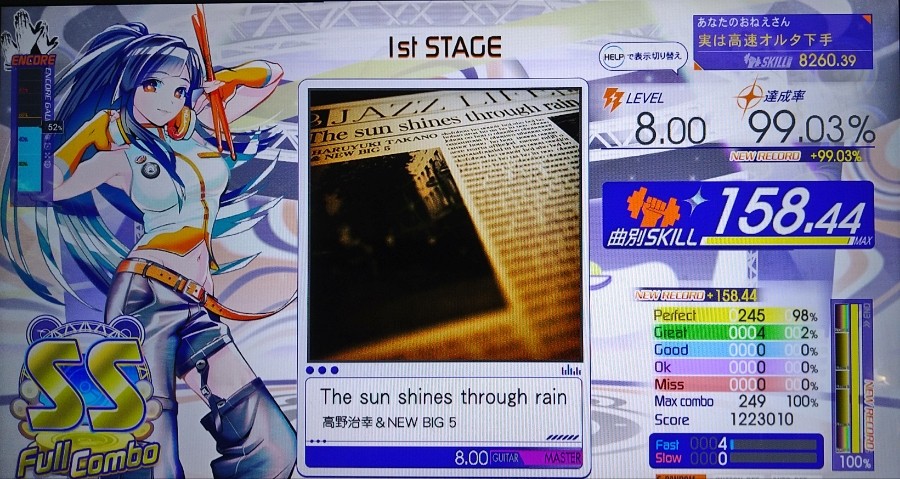 先々週土曜日ケンタ◯キー食べたらなぜか咳が止まらないからずっとゲセーン行かなかったのでリハビリ 完全初見 スパランなのにサビとラスサビが大外れのOPEN-R-G-Y-YP になっても何故か繋げたからヨシ