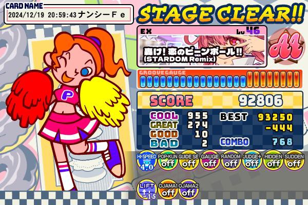 46クリアからクリアマーク更新 そしてex、16分の同時押しまた二重階段と 譜面が詰まって中々キツく感じました💦 取り敢えず上手くbad2まで行けたので良し