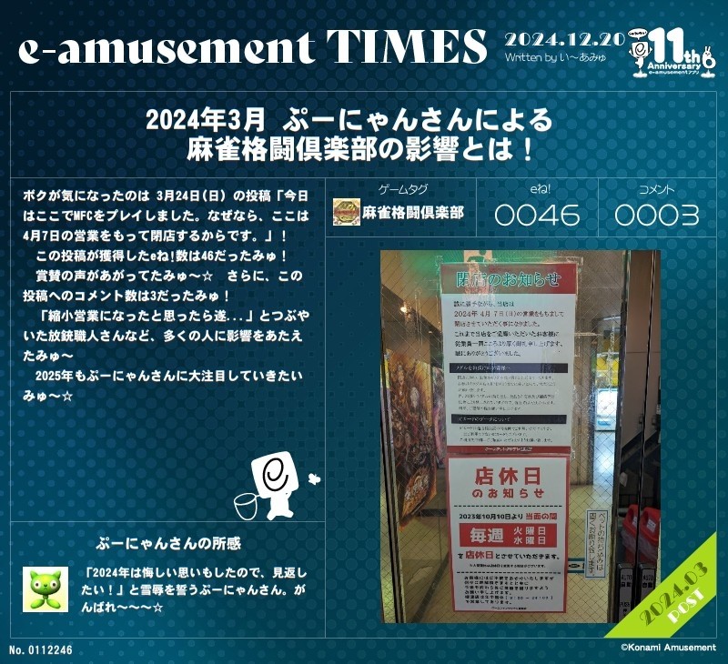 ぷーにゃんさんのe-amusementアプリ投稿詳細