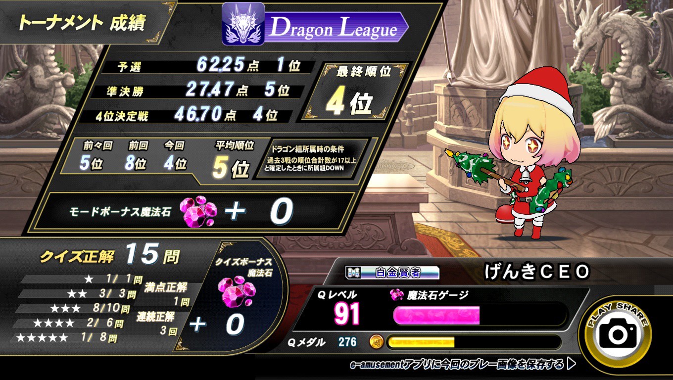 決勝に進めたら残留でしたが、惜しくも4位でミノタウロス組🐂に落ちました…。予選だけは良かったな…w
