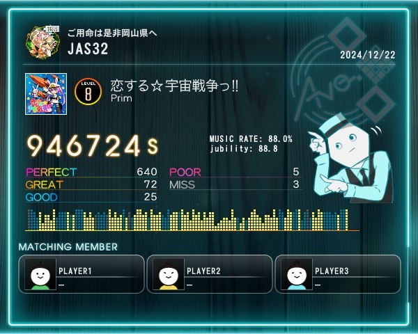 粘着3回目ラスト休符無視して押してたのは分かったけど、コンボ切れるのは、わからん。今日は諦める(゜o゜;