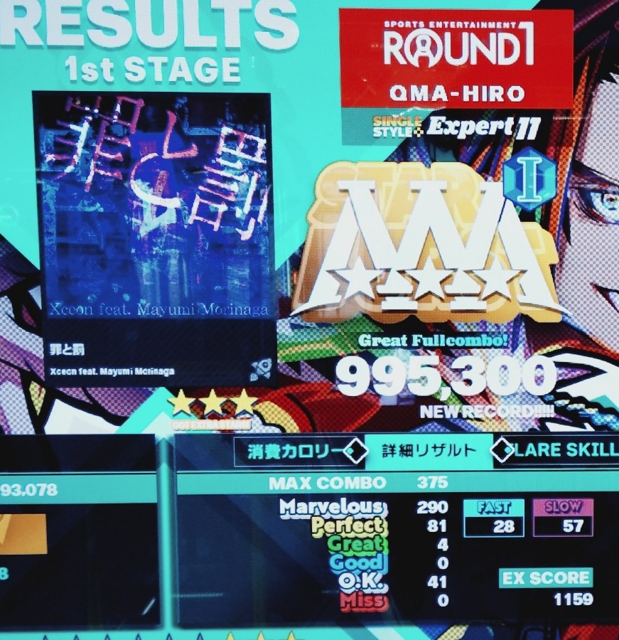 指のあと、DDRで体動かしました ウォームアップで選曲、スコア更新しました