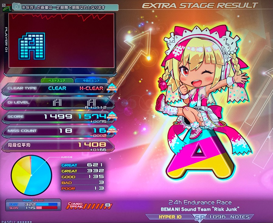「24h Endurance Race」(SPH)にチャレンジ! …わ〜いできた〜! SPLv10で4個目のハードクリア! 1/12のイチオシに登場してSP側を久々にプレーしたら、いきなり18ミスとか(笑) 翌日にハードゲージで狙いに行きました♪