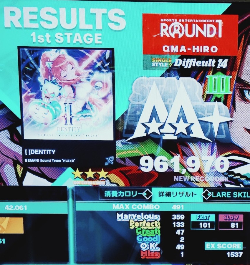 ラウンドワン横浜でDDR、体動かしました フレアレベル更新狙いの選曲 この曲が唯一スコアも更新しました