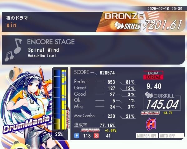 こっちもスキルアップ! 序盤もっと繋げばSまではいけそう。