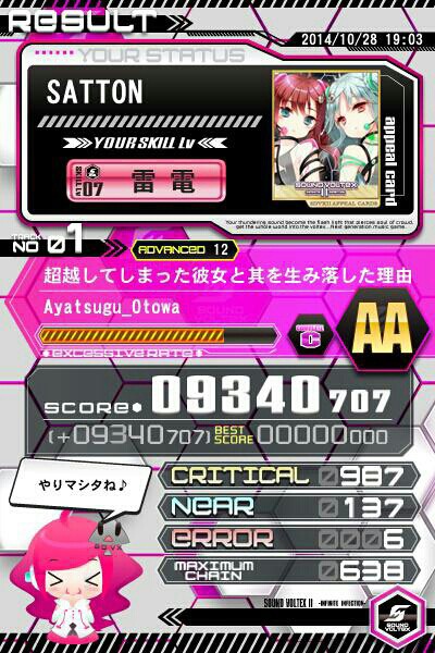 超越ADVハードクリア! この曲大好きだけど、ハード外すの忘れて落ちないかビクビクしてたなーw