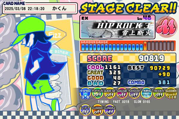 ヒップロック3 自己べ 2回目で再クリア! 無事成功! やっぱDDRクリア出来ないのに ヒップロック3出来るのバグだよ…