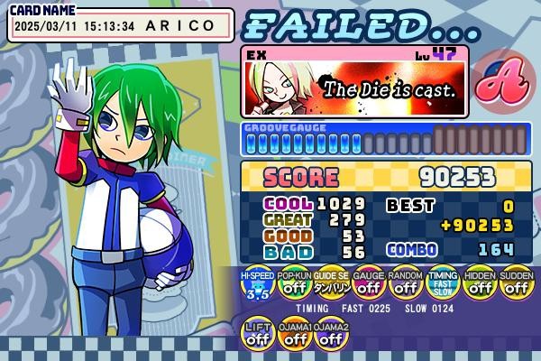 スコアチャレンジ参加The Die is cast.(EX)初プレー、47だったので挑戦してみたら…最後もっと押せたらクリア出来そうだった、9万点行けてるから最後を気を付けて次は挑戦する。