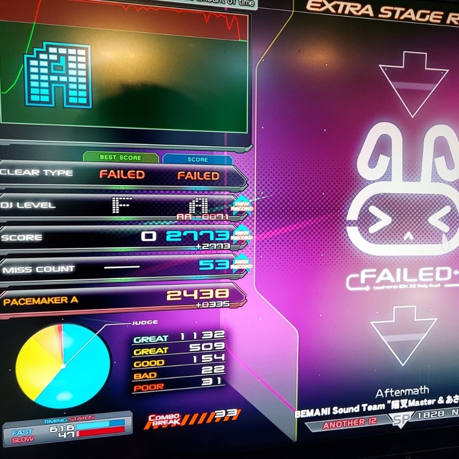 最後どう見ても86%くらいあったのに💢 曲終わってから減るなw このBPだとハード逃げも無理ですかね?