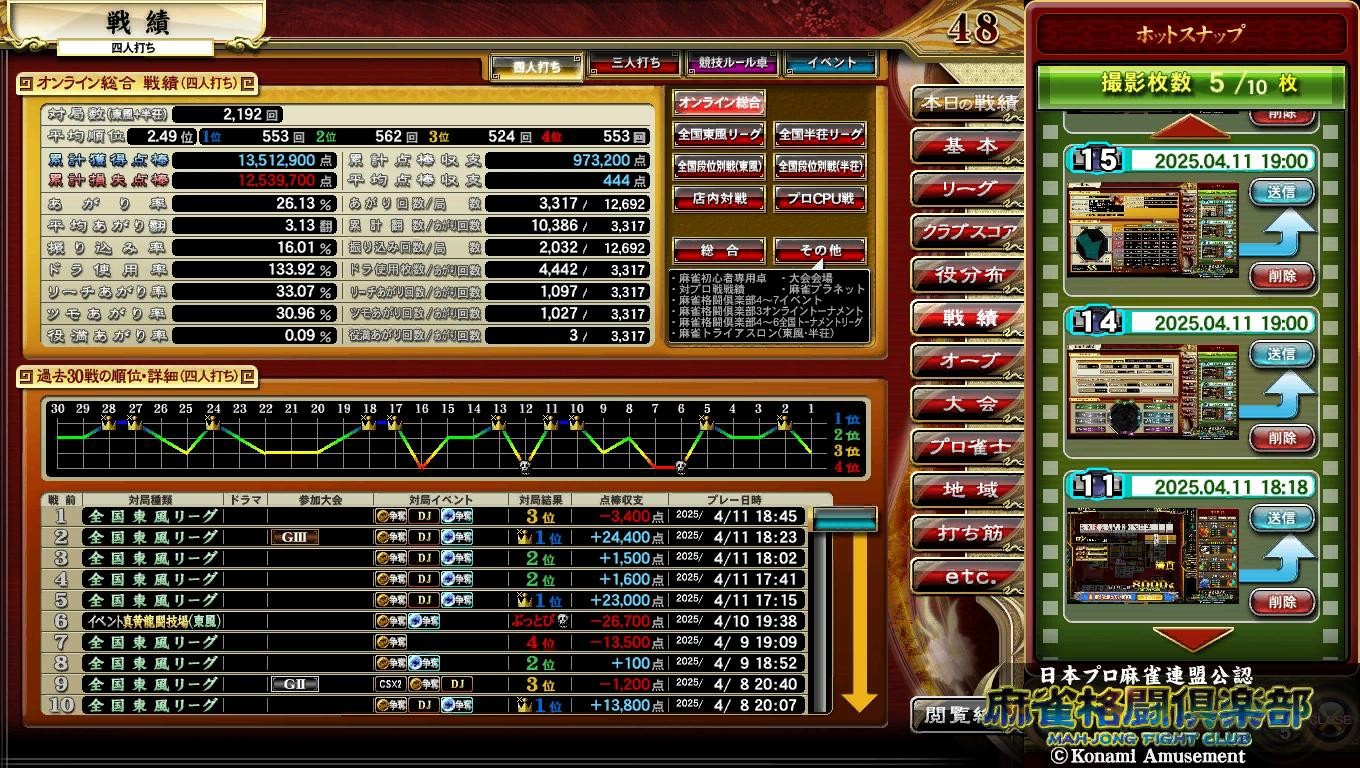 過去30戦成績&詳細10戦成績&オンライン総合&戦績です(四麻)