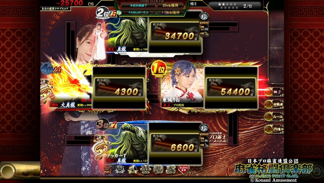 昨夜、半荘で東城プロと初同卓しました♪ \(^ω^\ ) 東城プロ、お手合わせ&長考挨拶ありがとうございましたm(_ _)m 結果はご覧の通り、東城プロの圧勝! 私はノー和了だったので、ラス回避できただけでも御の字です。 また同卓する機会がありましたら、その時もよろしくお願いしますm(_ _)m 次はトップ!…の前にまずはひと和了かな(;^ω^)