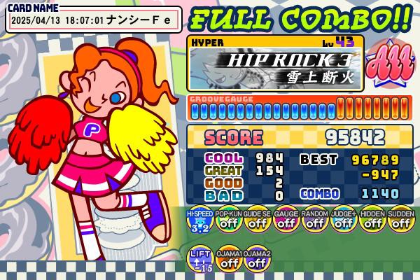 左ふくらはぎの痛みが殆ど無くなり、いざ解禁へ(挨拶) 43再フルコン ヒプロ3ハイパ久しぶりにやりgood2と 低速の左側の詰まった所で出てしまいますが 取り敢えず体調万全で調子が良いのは分かったので 次の曲へどしどし