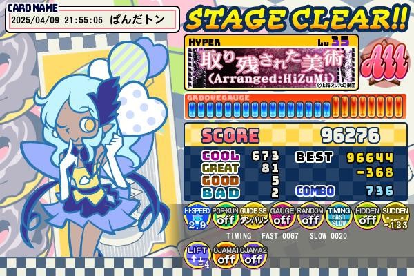 取り残された美術H AAA BAD2。スコアはまあまあかな。