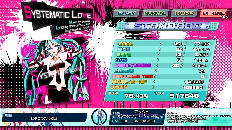 アッシュさんのe-amusementアプリ投稿詳細