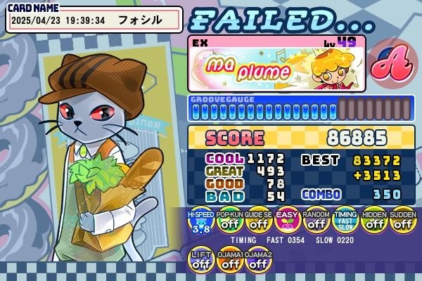 ma plume/Lv49/A スコア更新。ランプ更新はゲージ1粒分届かずorz
