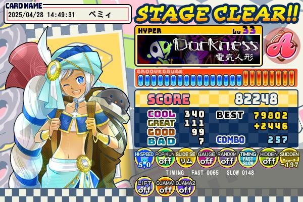 ダークネス(H)、思ったより繋げました。交互連打がすごい譜面…!