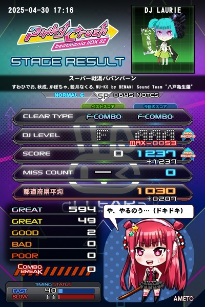 2025.4.30(水)今日のIIDX No.13 温泉ヒーロー [SPN] MAX-表記303曲目!!! たい平「前作苦戦してた曲じゃ…😅」 (俺、立ち上がる) 「山田君、1枚取りなさい! いらないから立ち上がったんだろうから」