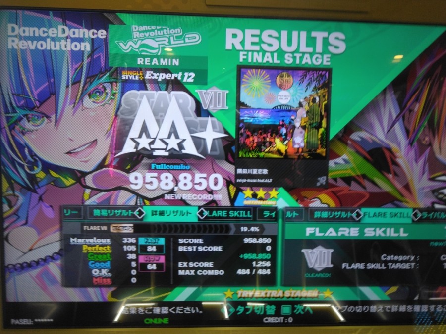 隅田川夏恋歌 SP-exp12 最近、ダンスラでSD remixで常駐した曲、初見プレイ、フレアVIIで、グド5会いながらフルコンボ、ゲージ1/5残し完走!…体力譜面ですわ