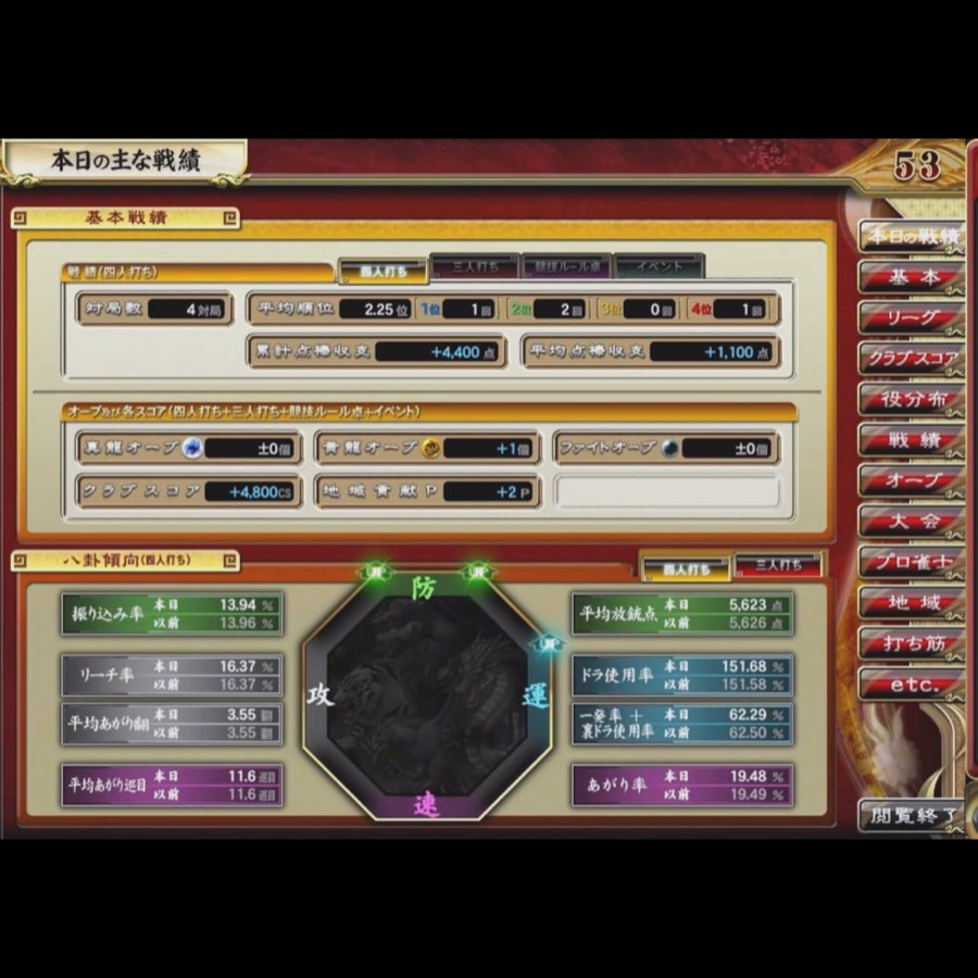 4東風やってー、 1-2-0-1 ラスったのは何も出来なかったなーって感じ(焼き鳥ラス) 4回目はオーラスまでトップ目だったのに… ラス目の人が2sと生牌の北シャンポンの北に出して捲られ2着…🤦♂️🤦♂️ 流局でトップもろたー!って思ったところでコレだよ😭😭