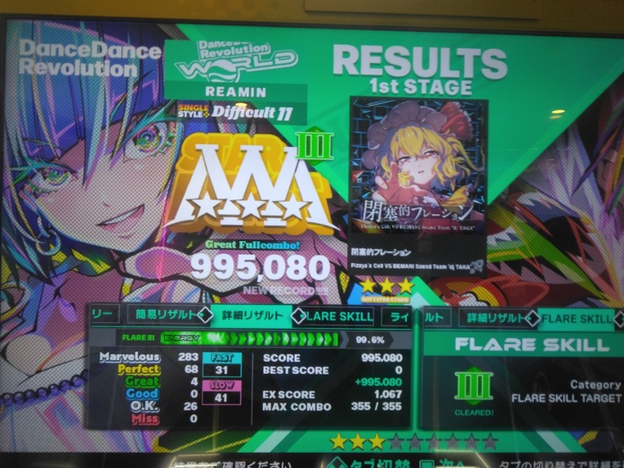 閉塞的フレーション SP-dif11 フレアIIIで初見、鳥Aフルコンボ!…EX抜け出来るぞ