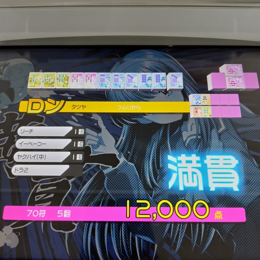 (親満振り込みスタートだったけど) ドラ切りもろ引っ掛けに被弾するとはね… →相手も強気に出てきた