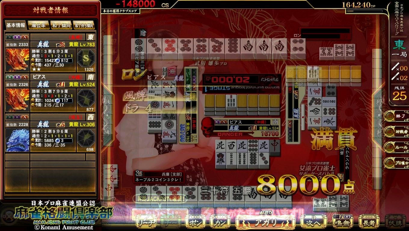 ⑧→③間四軒だが、次巡下家の立直宣言牌④ロン!満貫