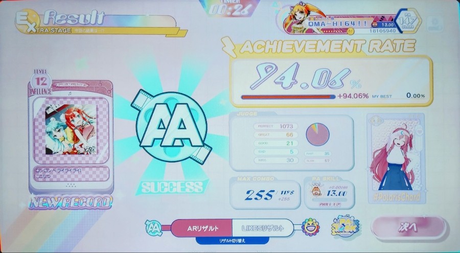 ☆12ロンロンへライライライ! 鍵盤押しにくい配置があり厳しい印象 かろうじてPAスキル更新しました