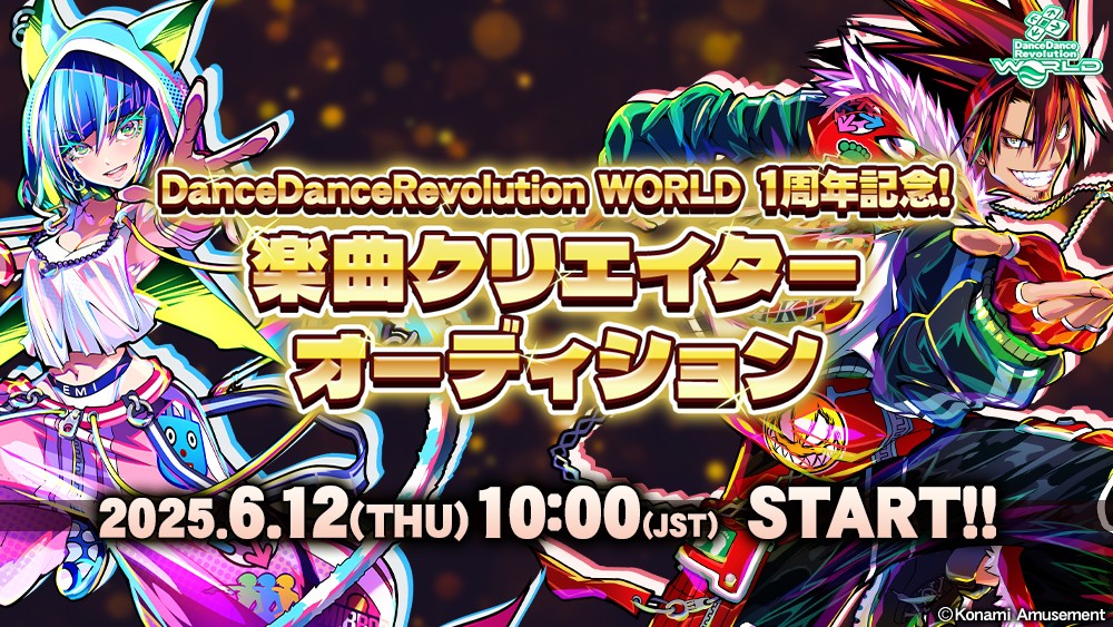 6月12日(木)10:00(JST)より、DanceDanceRevolution WORLD稼働1周年を記念して、「DanceDanceRevolution WORLD 1周年記念!楽曲クリエイターオーディション」を開催! 記念すべき1周年を皆様の楽曲で盛り上げよう! ▼詳細はこちら https://p.eagate.573.jp/game/ddr/ddrworld/audition/music/01/top/index.html #DDR #DDR_WORLD #BEMANI