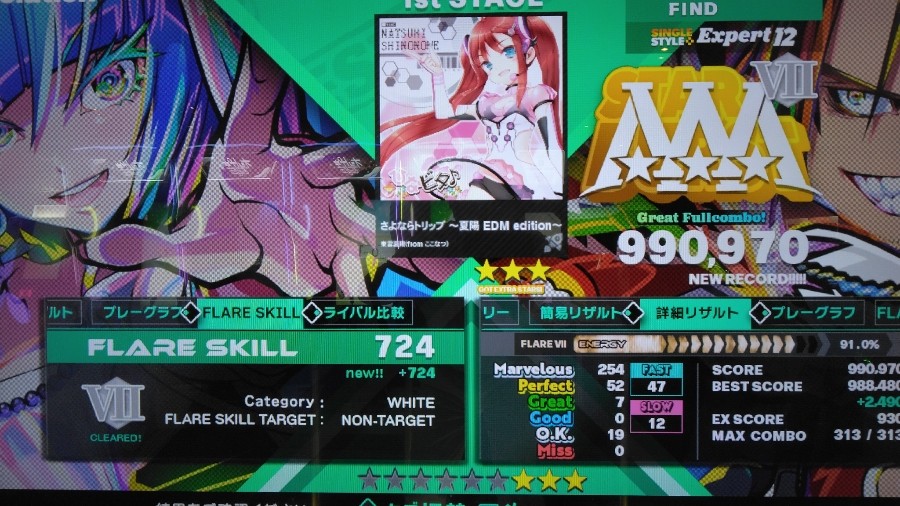 『さよならトリップ ~夏陽 EDM edition~』DDR-SP-EXPERT。 今回は曲の関係上、フレアスキルは度外視しています😊