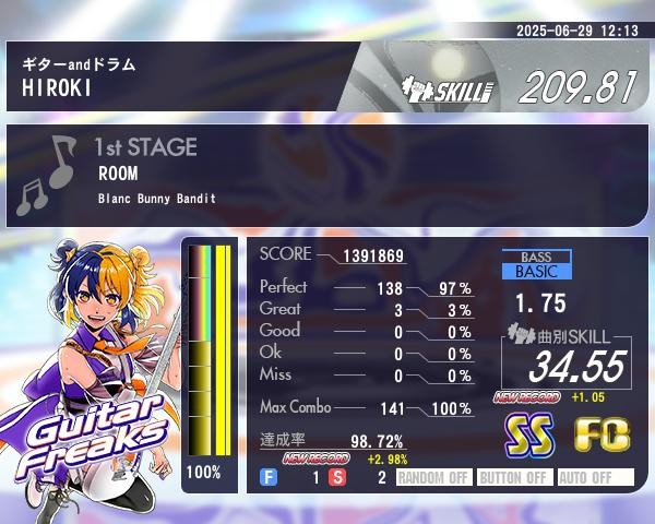 1st STAGE ROOM (1.75 Blue Bass) Full Combo! SS Great 3