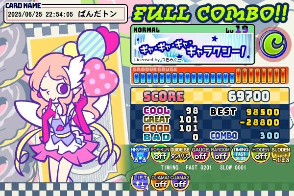 ギャ・ギャ・ギャ・ギャラクシー!N 3等分リザルト失敗。 何度か練習すればできるとは思う。初見はたいていこんなもん。