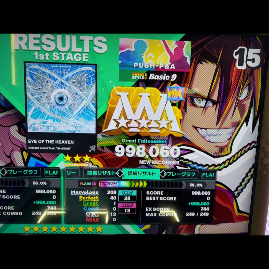 END OF THE HEAVEN[SP黄]初見、ラスト10個くらいでGREAT出て一発PFCドヤを逃した。