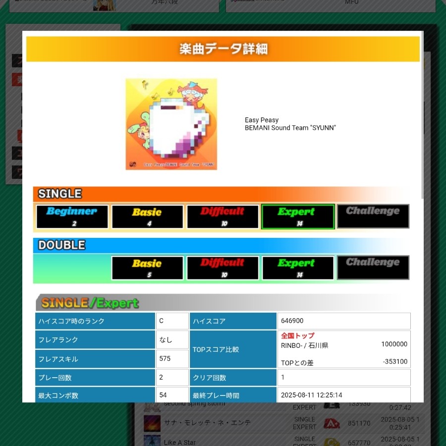 クリア出来ました。これも前に落とした曲なのでクリア出来て良かったです。