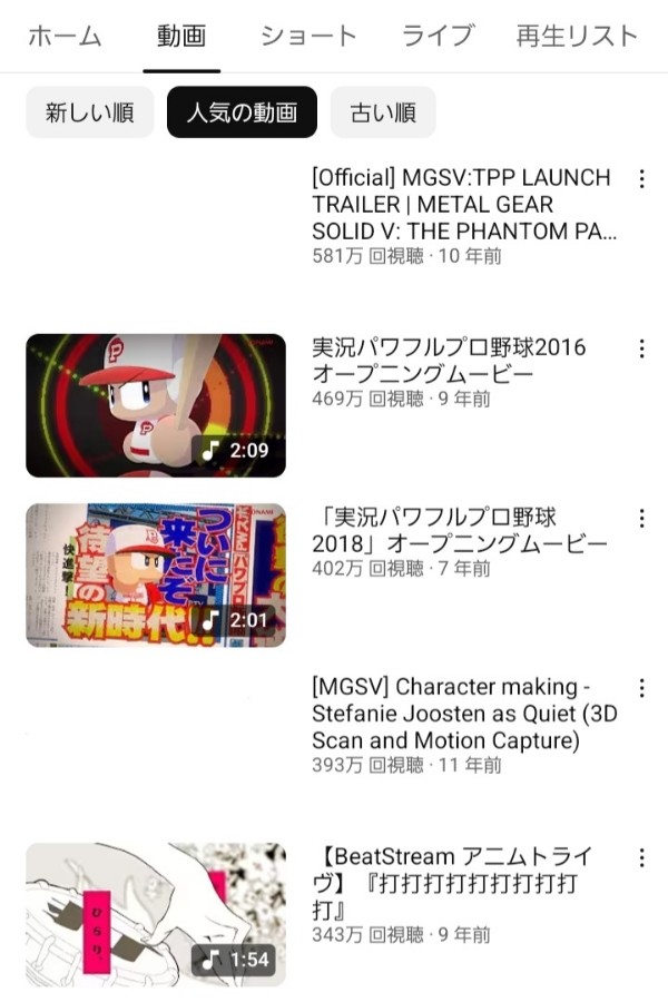 KONAMI公式チャンネルの再生数5位がビーストのMVってスゴすぎでしょ(画像は加工済) 引用元:https://youtube.com/@konami573ch