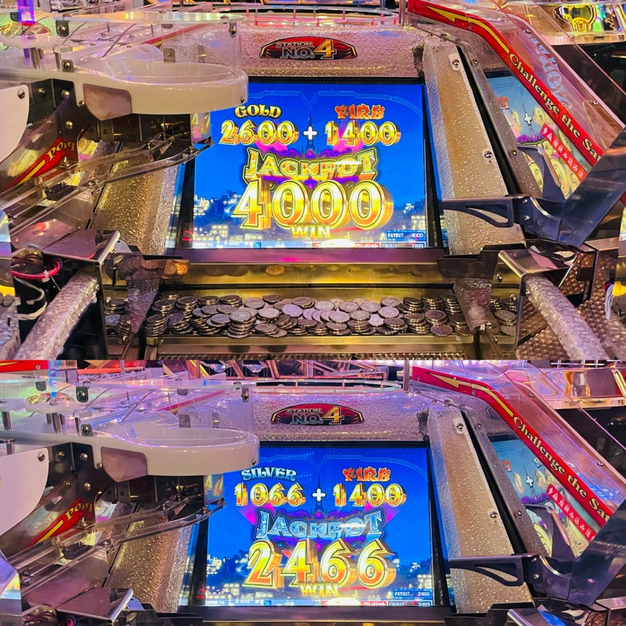 2025年9月22日 JACKPOT第145号!! GOLD FIRE JACKPOT 4000 WIN 2600+1400(Lv.6) JACKPOT第146号!! SILVER FIRE JACKPOT 2466 WIN 1066+1400(Lv.6) GOLD JPの方は女神リーチからのダイレクトJPC FIRE SILVER JPの方はGOLD JPで落ちたボール3球のうちの2球目からのJPCでした! 約1時間で JP両取は神ってましたね! 2000枚程増えました!