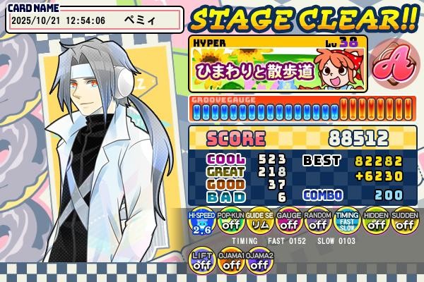 (またリザルト上げきれませんでした… 学習します) ひまわりと散歩道(H)、メダル更新しました。前のスコアがひどい。 ※いつものこと※