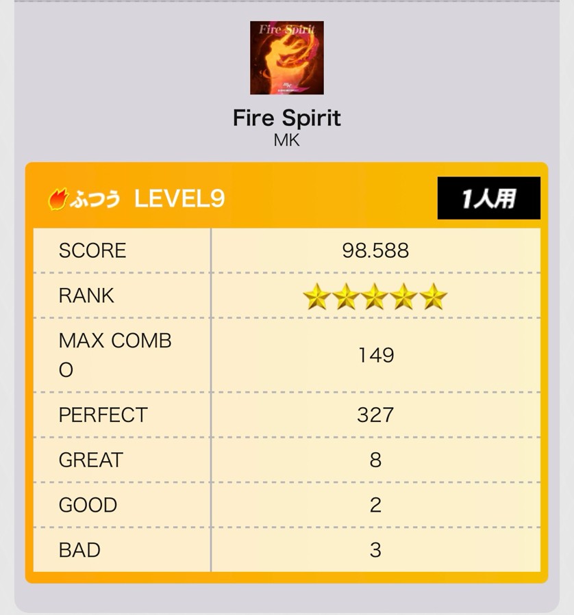 Fire Spirit(ふつう) ちょいスコア伸ばせた