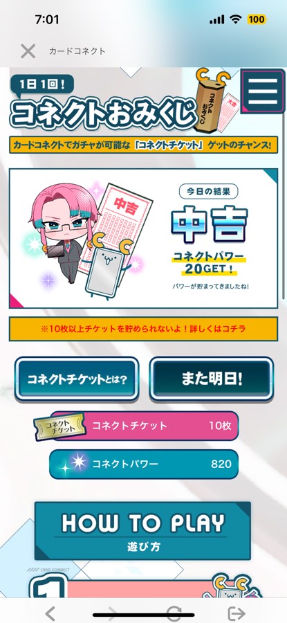 今日のコネクトおみくじ!中吉でした。 #コネクトおみくじ