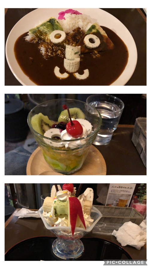 ひなビタ♪タグでも倉吉のダイアナさんにお邪魔した書き込みをしましたが、やはり実際の食事はこちらに書き込ませて頂きます。 上の画像はホーンテッドメイドランチの歌詞にも登場する泣く子も黙るピザカレーをリアルで食べてきました。 日向美ビタースイーツの楽曲では同曲が一番好きなのでメニュー表を見た時に「コレだ!」と思いました。 真ん中の画像はピザカレーのサービスで頂いたミニちくわパフェですが、こちらを頂いた後下の画像のリアルちくわパフェも別に頂きました。 念願叶ってリアルで食べられた事に感謝です。